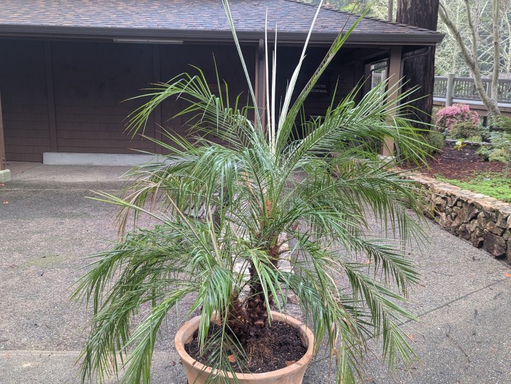 1. Phoenix roebelenii, pygmy date palm, which is one of a pair, is included in my six this week only because relocating them, in their large and heavy pots, was such a major task.