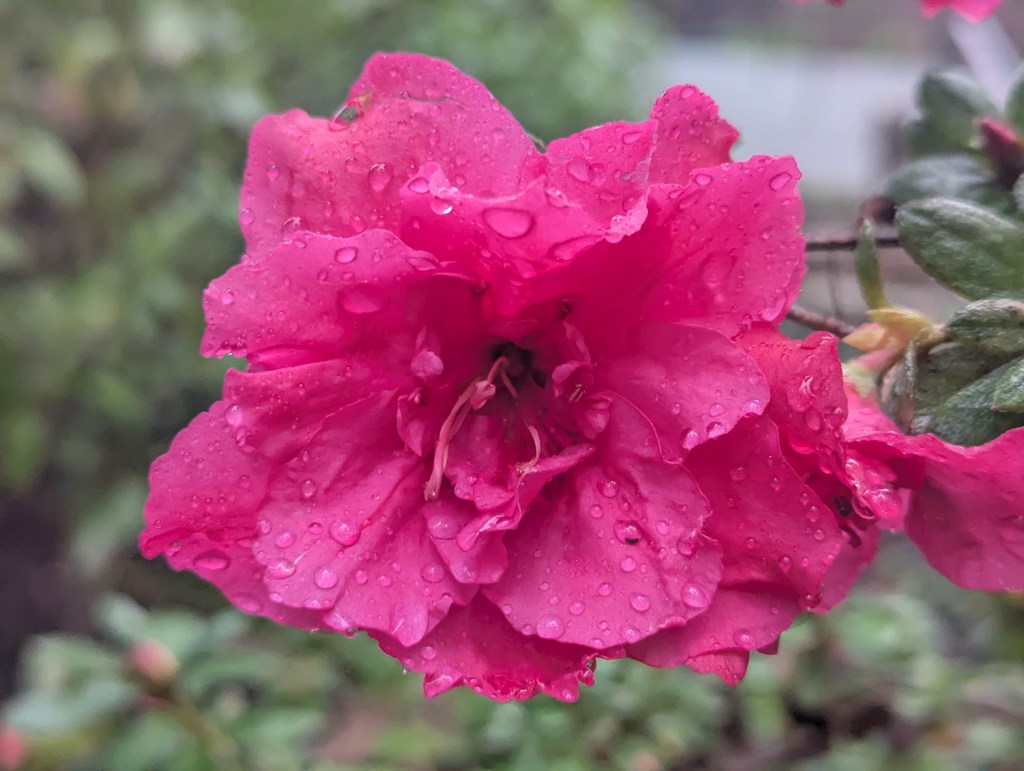 6. Rhododendron spp., azalea started blooming prematurely nearly two months ago and continues to bloom through winter. Its bloom duration compensates for its off schedule.