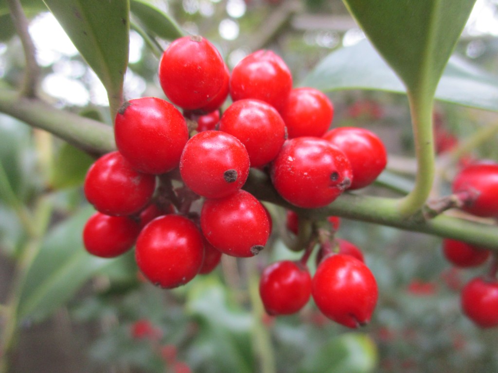 1. So do I, but except for the impressively prolific berries of pyrcantha, such red berries are rare here. Hollies in landscapes lack pollinators. In the wild, they make only a few berries.