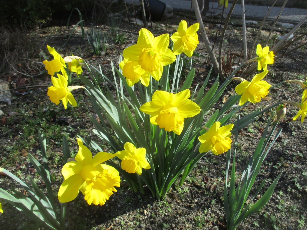 1. It is nice that the narcissus are blooming now. The weather is a bit warmer, so the fragrance is stronger. Because no one is around to see them bloom, they were cut for a friend of Rhody who appreciates them.