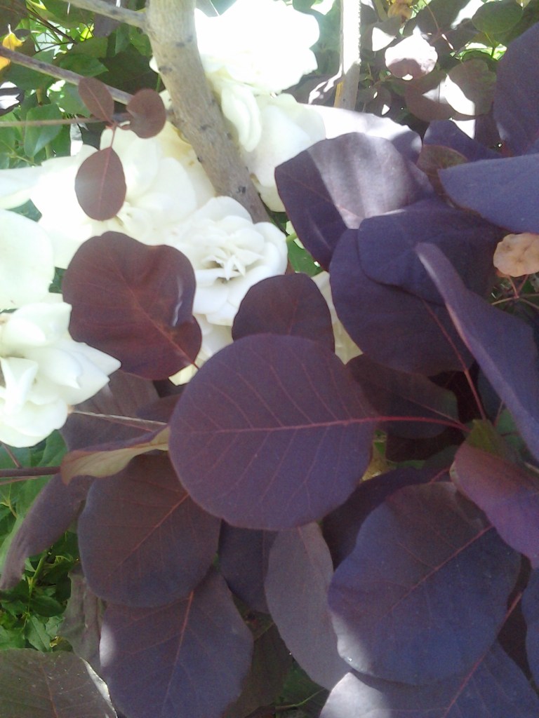 Wispy billows of pinkish or tan blooms through June and July are what the smoke tree, Cotinus coggygria, is named for. It probably should have gotten more recognition for brilliant foliar color in autumn. It reliably turns bright yellow and orange, and if the weather is right, it can turn rich red and even purplish. Until then, the popular modern varieties have either dark purplish or light yellowish foliage. Some of the older plants have slightly bluish green foliage. The nearly circular leaves are about two or three inches long. Yellowish varieties tend to be shortest. Those with purplish or bronze foliage get larger. Old fashioned green plants are the largest, and can get twelve feet tall and broad. Smoke tree can be large shrubbery, or pruned up as small trees. Aggressive pruning in winter promotes better foliar color through spring and summer, but inhibits smoky bloom. Slightly distressed plants have better color in autumn. Plants that are watered too much are likely to succumb to disease within only a few years.