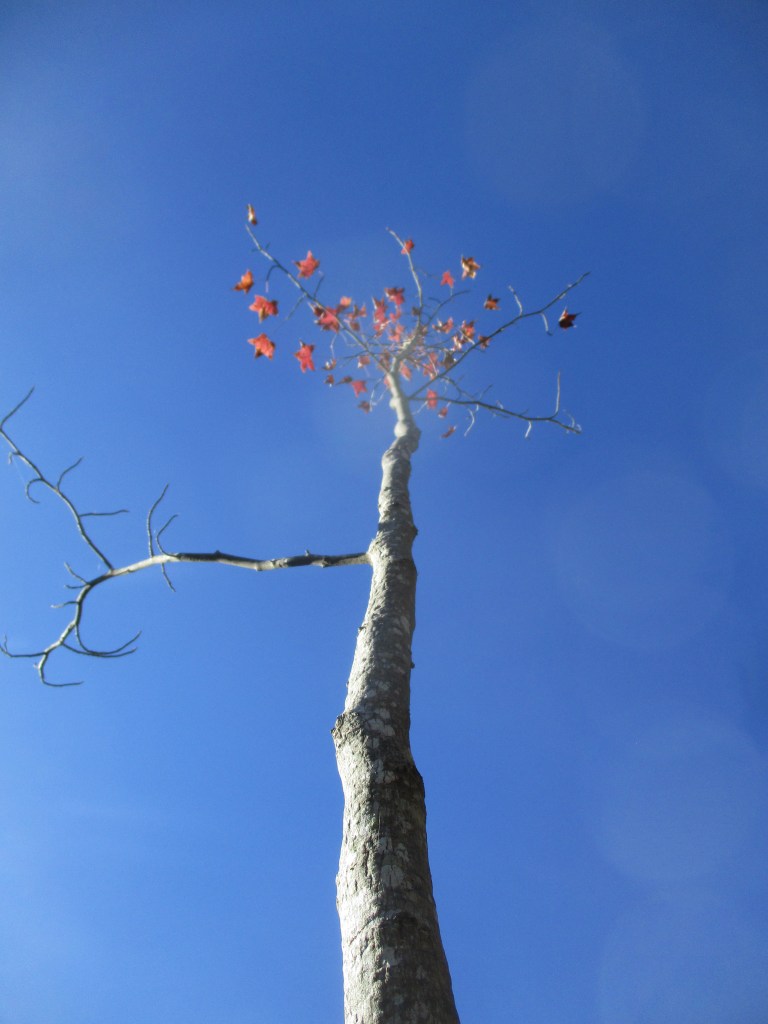 1. Liquidambar styraciflua, after pruning to compensate for severed roots, has only a few twiggy branches, but is more than sixteen feet tall! What a homely sweetgum! Was it worth recycling?