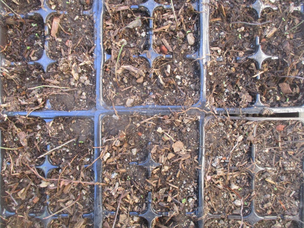 3. Cornus florida, flowering dogwood, was significantly more prolific with seed than the sweetgum. We wanted to recycle just a few seedlings, but got eighty four. Each cell contains a seedling.