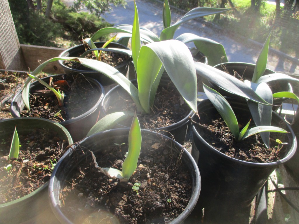 Recycling can be a bad habit. We accumulate more material here than we can use back out in the landscapes. Some gets shared with friends and neighbors. Of these six, all but the Agave (#4) grew from seed, so are not cultivars. Although the Agave grows from genetically identical pups, no one know what species it is! Fortunately, around here, we are not too discriminating.