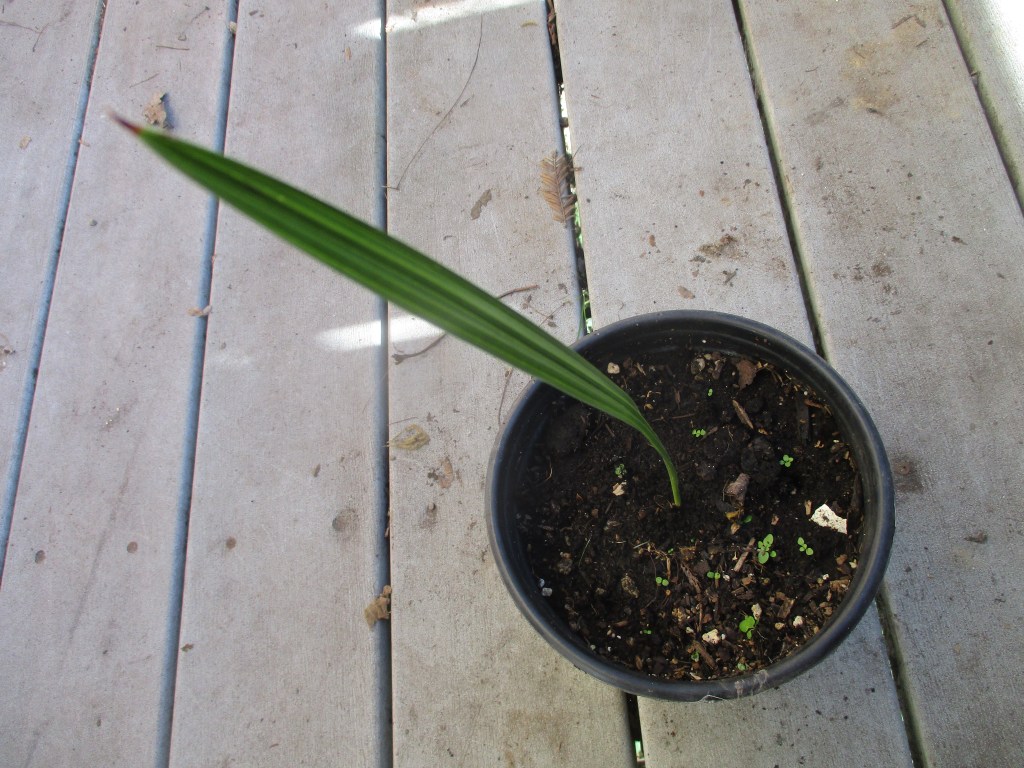 5. Phoenix dactylifera, date palm, grew from seed in a compost pile. There are about seven of them. It is impossible to predict which will be female, or what the quality of their fruit will be like.