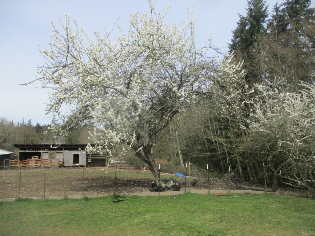3. Pluot was still in early bloom when we arrived in Kitsap County. I dislike pluots, but it might substitute for apricot, which is unreliable in the local climate. Peach is absent too.