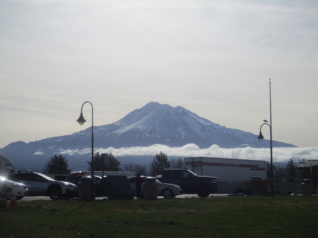 When I drove north from California I always stopped overnight at Mt Shasta – the town. It was at the spot where the miserably dry heat of California ended and cool, green Douglas fir country started.