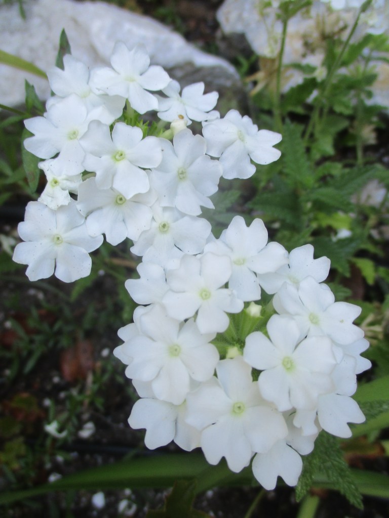 While brightly colorful annuals are appealing within sunny and exposed situations, white flowers brighten darker situations. They contrast nicely with dark green foliage and richly colorful flowers. Petunias that might be a bit too deep purple for a particular situation can mix with similar but white petunias to be more harmonious. White can be a buffering tint.