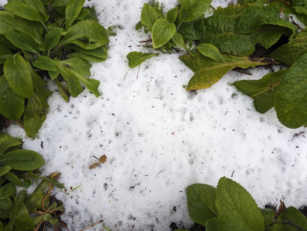 4. Digitalis purpurea, foxglove does not do much now, and is merely incidentally to this strange picture anyway. Snow from Thursday and Friday is the major development here.
