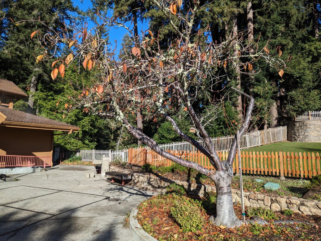1. This flowering cherry tree has been deteriorating for the past several years. Several big limbs have died, leaving its canopy disfigured and lopsided. Its right half is nearly gone.