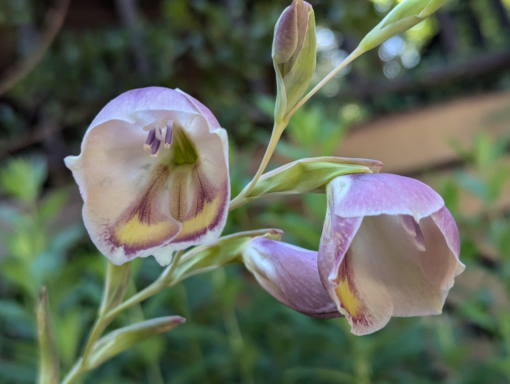 Gladiolus papilio, butterfly gladiolus has been performing very well, and, unlike the more common fancy hybrid gladiolus, it has been very reliably perennial. It multiplies and migrates like a wildflower. I know that I brag about it more than I should, and I just posted a picture of it for Six on Saturday last Saturday, but it happens to be one of my favorite perennials now. It was a gift from Tangly Cottage Gardening in the autumn of 2018, almost six years ago. Prior to that, I had been wanting to grow perennial gladiolus for quite a while, although I was not familiar with such species. I was only familiar with the common fancy hybrid sorts, which are generally not reliably perennial. Gladiolus murielae, Abyssinian gladiolus that arrived a few years ago as a gift from a neighbor may eventually inhabit a different portion of the same landscape that the butterfly gladiolus inhabits. It neither multiplies nor migrates as much as the butterfly gladiolus, and is a bit more garish in bloom, but is both reliably perennial and compatible with wildflowers, and technically, is probably more appropriate to that particular refined landscape. Various cultivars of Watsonia, bugle lily, most of which also came from Tangly Cottage Gardening, could also inhabit the same landscape. There is no rush to decide anytime soon, and the refined landscapes at work are constantly evolving. Within my home garden, I can be less concerned with how visually compatible some of such species and cultivars are, and be more concerned with growing what I enjoy. After all, that is how I acquire so many odd species and cultivars with so much history and from so many important gardens, and even from so many natural ecosystems. It is what makes my home garden so important to me.