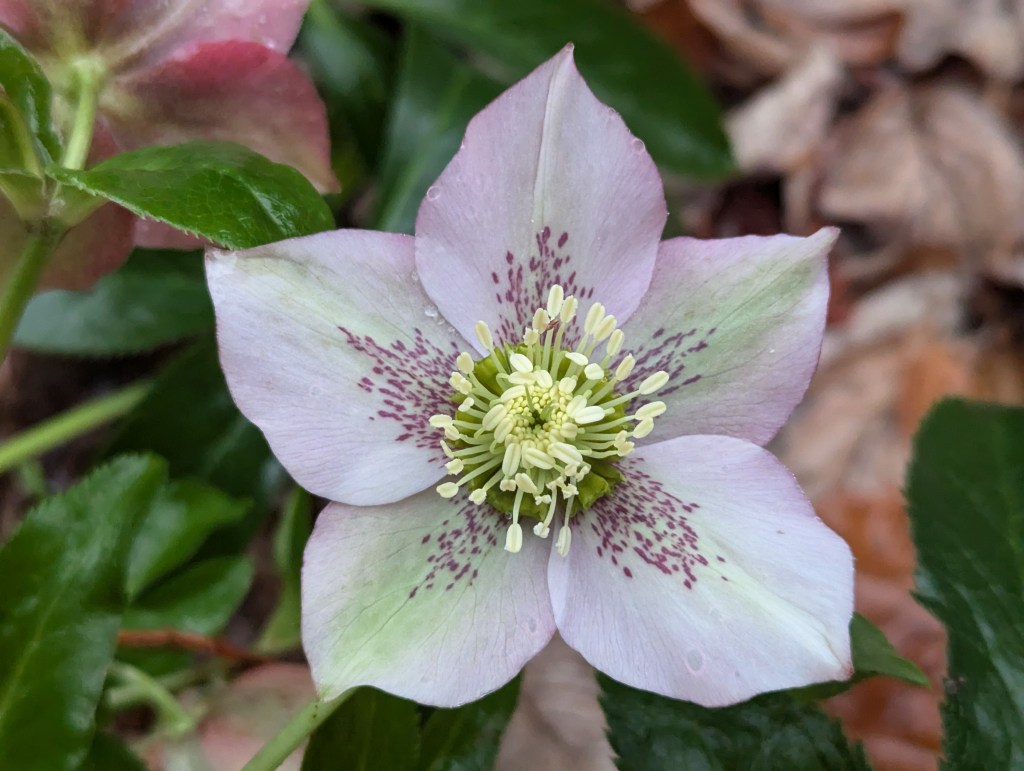 At my first apartment in Seattle, the front landscaping was azalea heavy and there was a branch that was lit up as it was encroaching on the signage. I always assumed it was the light and heat from the lighting, but it may have been a rogue bloomer! That is an enticing hellebore – I find I favor speckled flowers, foxglove, lillies, alstromeria, etc.