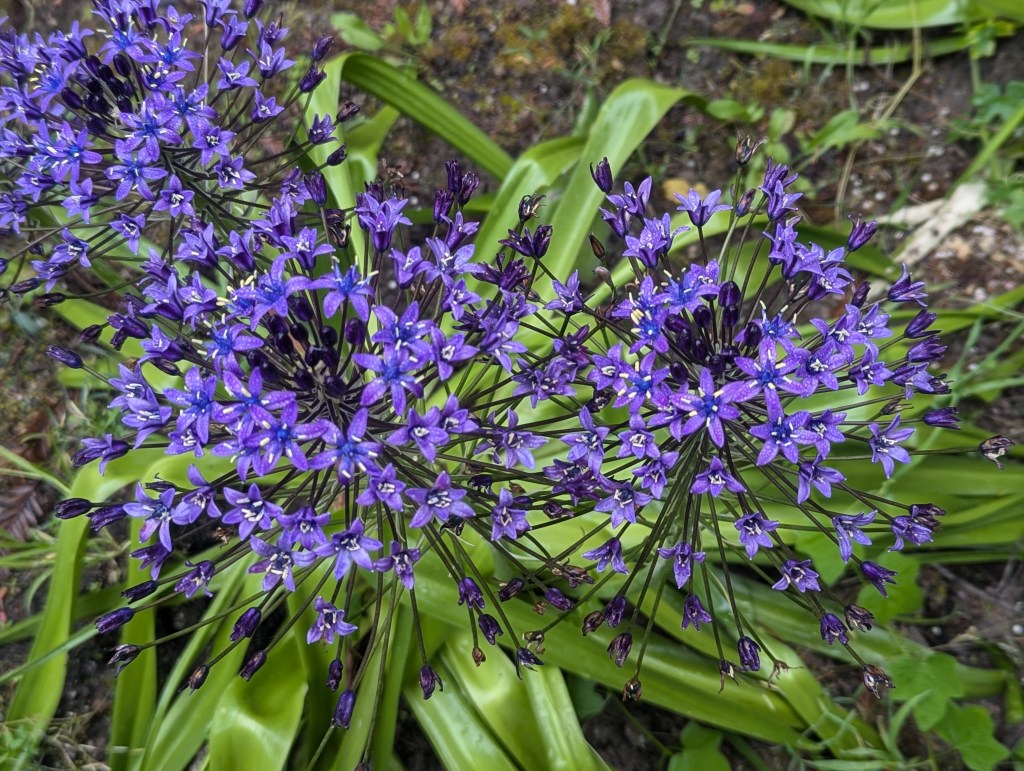 3. Scilla peruviana, Peruvian squill has been reliably perennial for about three years but has not grown much. Although the floral trusses are bigger than they were last year, they are no more numerous. Just nine remain in three groups of three, just as I planted them.
