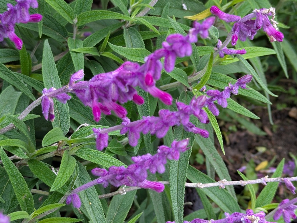 6. Salvia leucantha, Mexican blue sage bloom is fuzzy, but not quite as fuzzy as it seems to be in this unfocused picture. The camera was more interested in the foliage behind it.