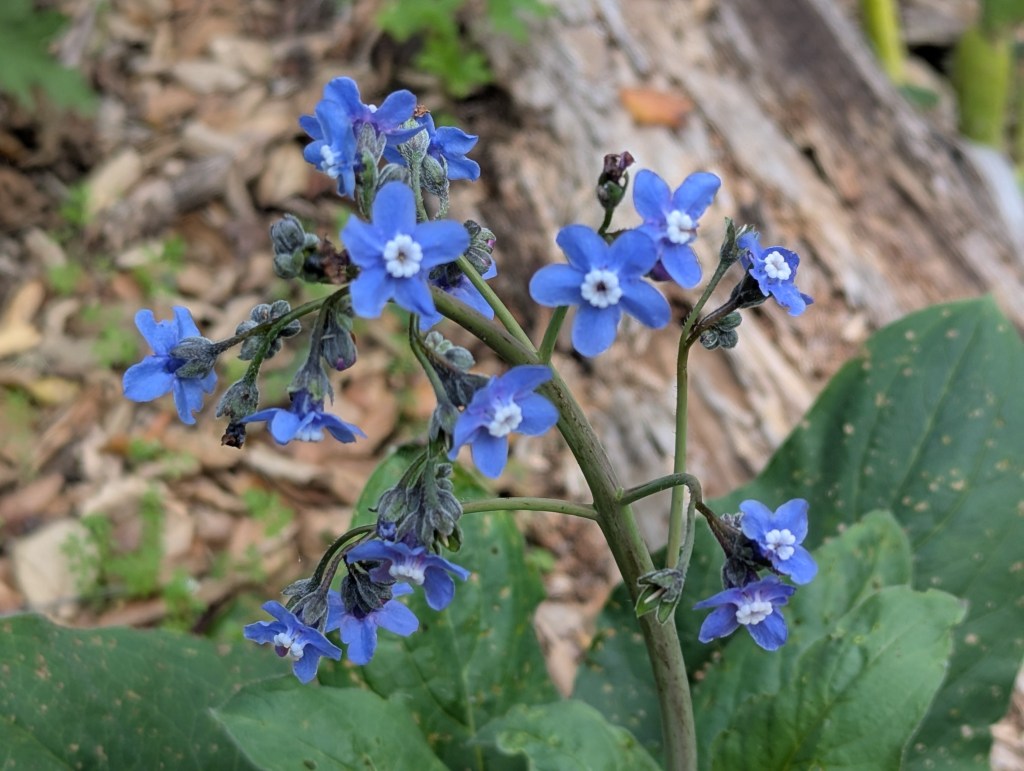 3. Cynoglossum grande, Pacific hound’s tongue is a native wildflower that grows where it wants to. This one is in my driveway. It will not die, but it does not like to be relocated.