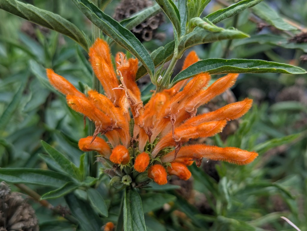 5. Leonotis leonurus, lion’s ear does not actually bloom at this time of year. This is just a random off bloom. It could be early for next summer, or it could be late for last summer.