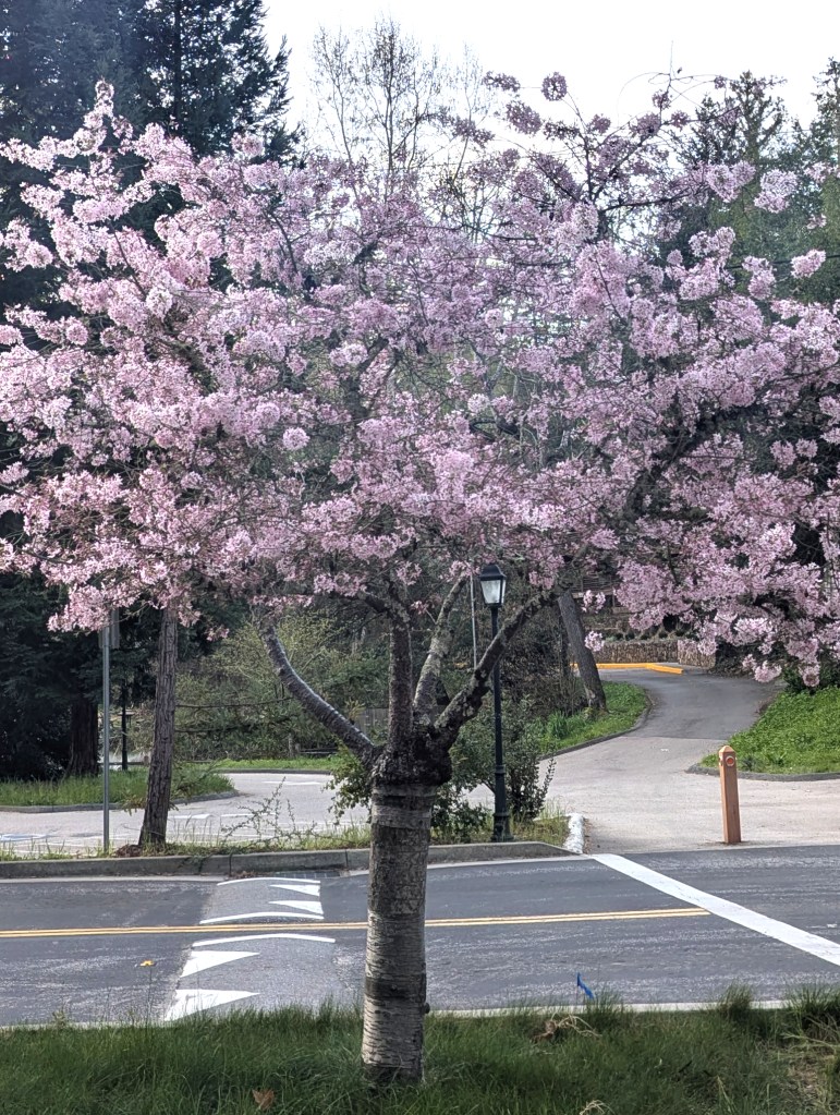 Fruit trees such as apricot, cherry, peach and plum, bloom about now. Some are already finished, while a few are just beginning. Apple and pear trees will bloom somewhat later. More colorfully, flowering or fruitless counterparts of such trees are on similar schedules. Flowering apricot has already finished bloom. Flowering crabapple will likely bloom last.