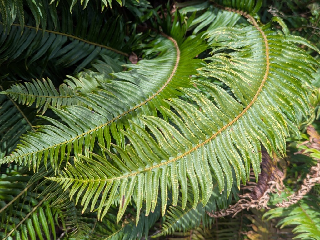5. Western sword fern was featured in an upcoming gardening article. This picture is the same as the illustration but sideways. This fern is very common in the Pacific Northwest.