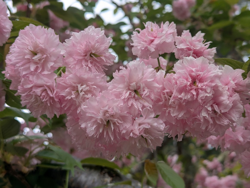 2. Prunus serrulata ‘Kwanzan’ flowering cherry is sort of still blooming. Well, the bloom is really beginning to deteriorate. It is the last of all flowering cherry trees here to bloom.