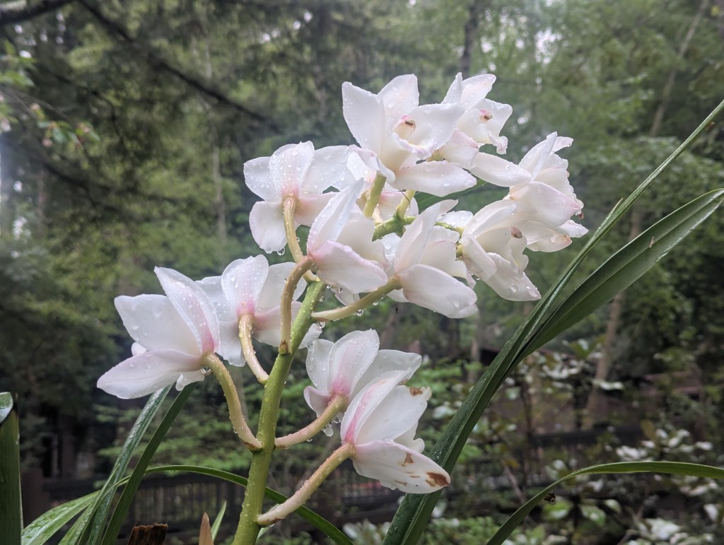 5. Cymbidium spp., orchid is blooming even after some aggressive division. At least one of its seven pups also bloomed well. Prior to division, it bloomed with eight floral stalks!