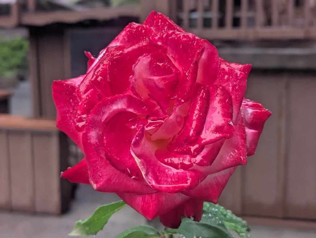 6. Rosa spp. ‘Double Delight’ rose bloomed before the other roses in its garden, although other roses are blooming concurrently in another of our gardens about half a mile away.