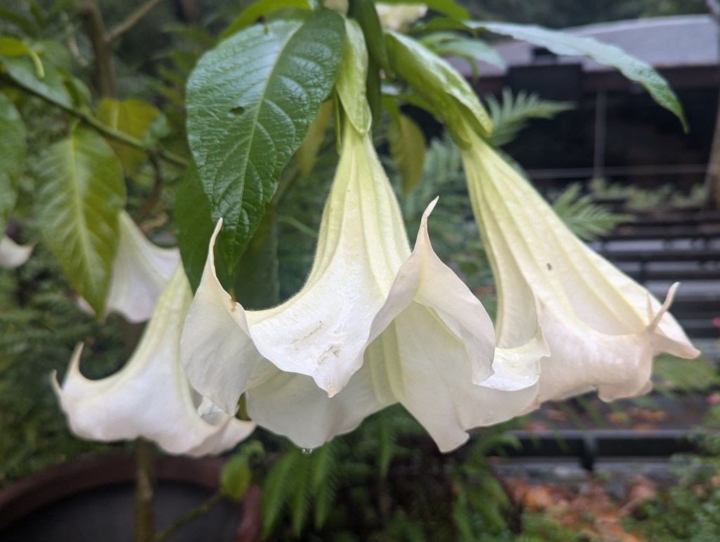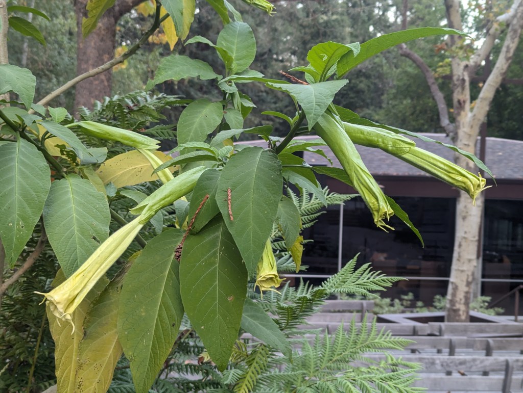 1. Angel’s trumpet probably should not bloom so late, but does not seem to know or care that it is autumn. I was impressed by a previous bloom phase, so will see what this does.