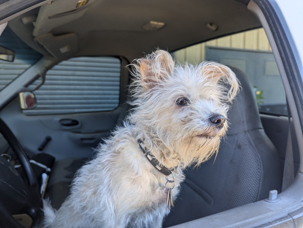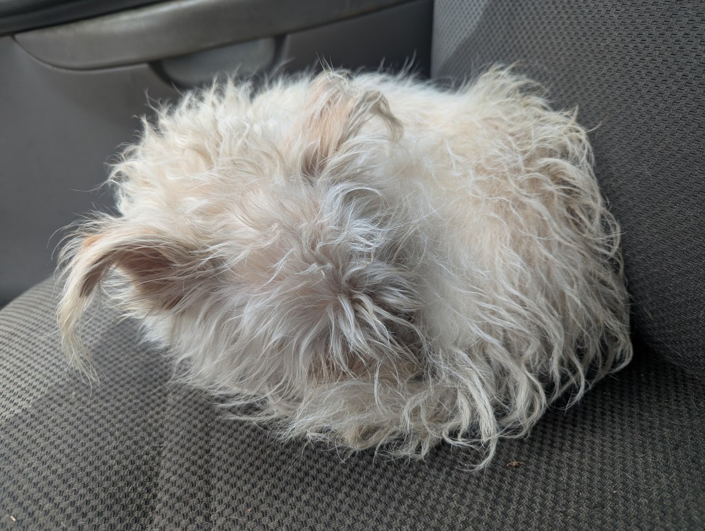 6. Rhody curls up somewhat tighter while the weather is cool. His fur should get fuzzier, but does not seem to be doing so. He insists on coming to work with me, out in the cold.