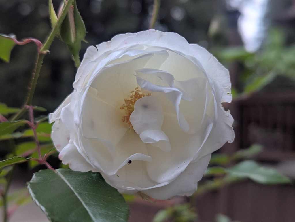 2. Rosa spp. ‘Iceberg’ rose is probably the last rose to bloom for the season. A few young floral buds are molding before they bloom. The roses get pruned before New Year’s Day.