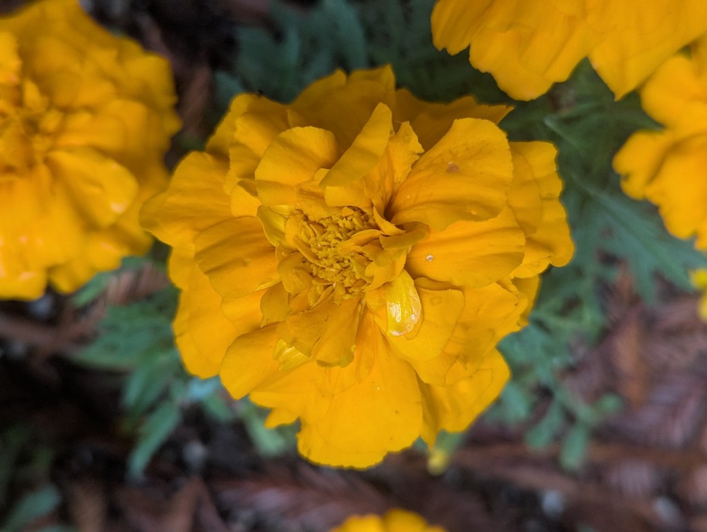3. Tagetes patula, French marigold is more seasonable. It is expected to bloom through autumn, and could continue until replacement with warm season annuals during spring.