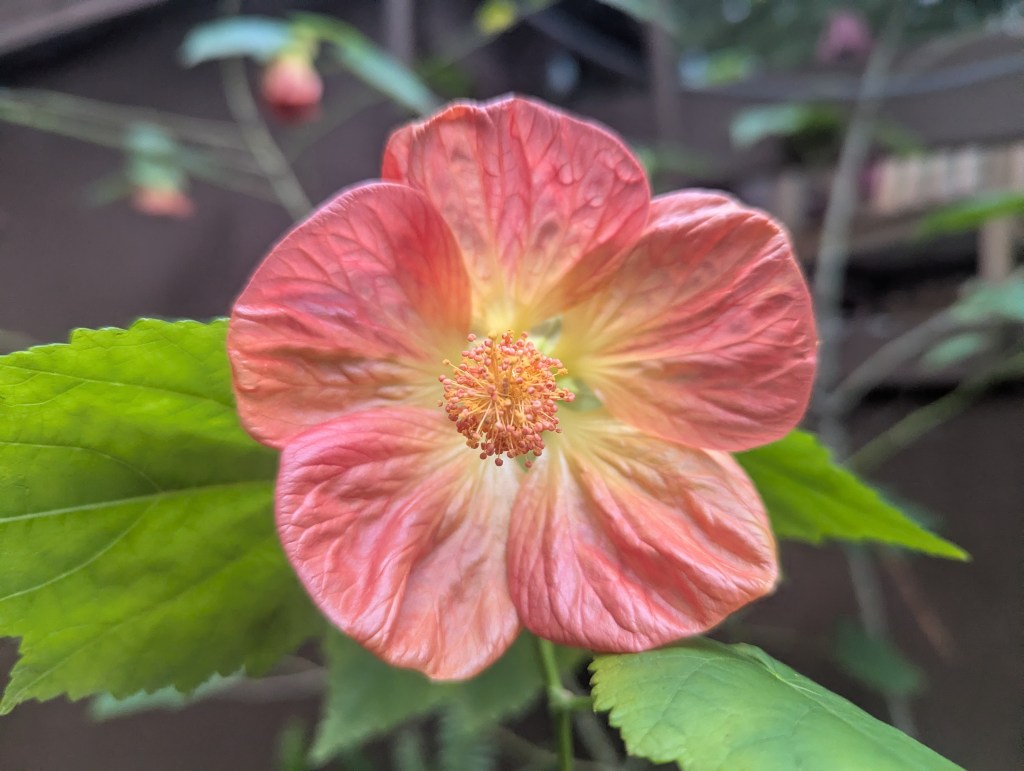 4. Abutilon X hybridum, flowering maple does not seem to know when to stop blooming for autumn. Its bloom should probably decelerate now that the weather is getting cooler.