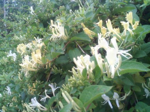The unrefined twining vines of good old fashioned Hall’s (Japanese) honeysuckle, Lonicera japonica ‘Halliana’, seem to fit in so naturally with lilacs, hydrangeas and bearded iris; the sort of plants that grow in grandma’s garden. Grandma may need help controlling it though, since it can climb more than twenty five feet, and get overgrown and invasive. It is best pruned back to main canes or to the ground annually at the end of winter. Even though it is evergreen, it drops some of its foliage and looks rather tired by the end of winter anyway.