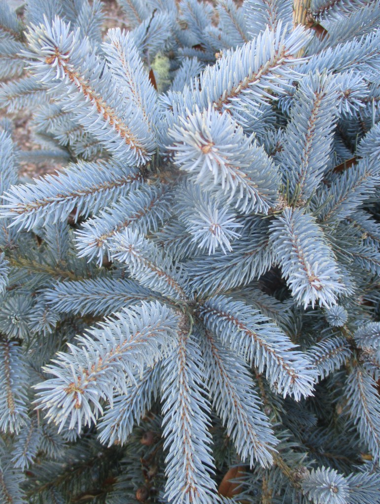 The landscape is a bit sparse in front (I think because of architectural modifications after the landscape was designed), so was outfitted with recycled live Christmas trees. Although none of these particular trees seem happy in the local climate or sandy soil, I had wanted to get better acquainted with them for some time. They are an odd assortment of spruce and fir that are rare here.