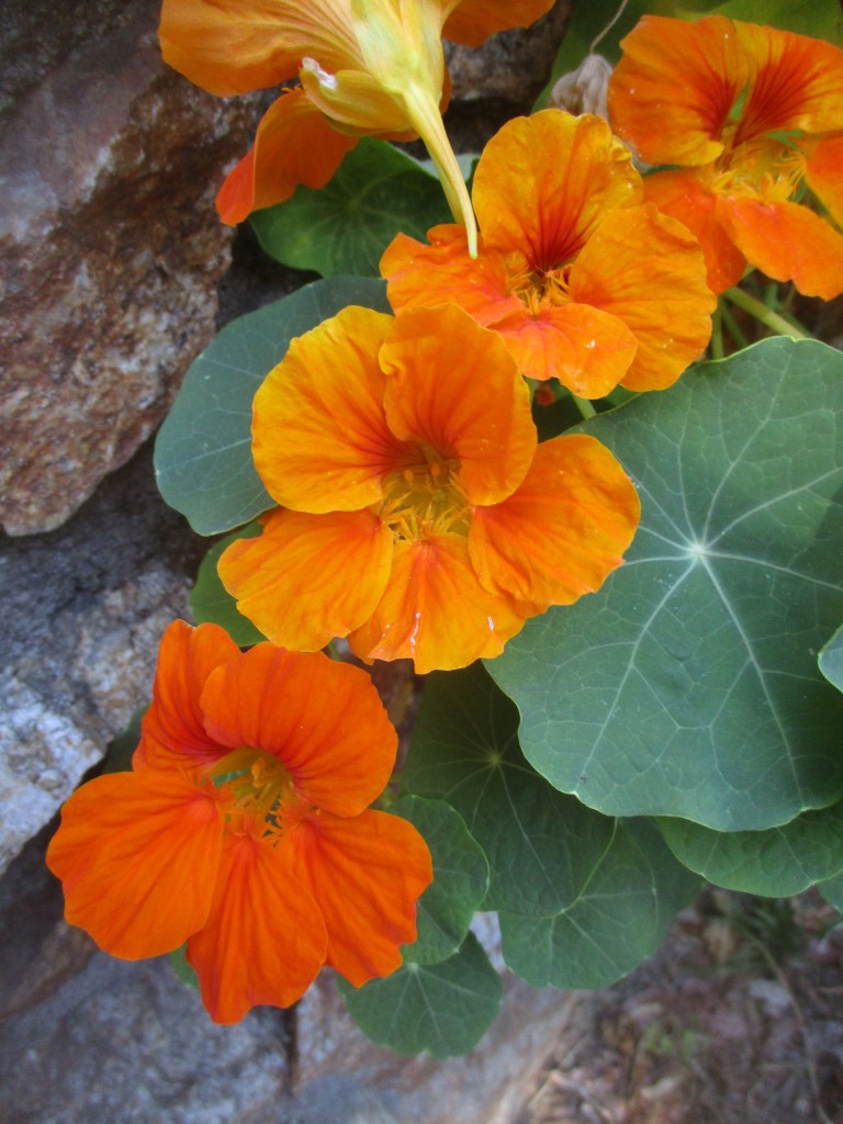 Whether feral or planted intentionally, nasturtium, Trapaeolum majus (which is actually a hybrid with two other species) is a delightful flower that just about everyone appreciates. Its eagerness to self sow and possibly naturalize in riparian situations attest to how easy it is to grow. Seed for many varieties is readily available. Feral plants provide feral seed.