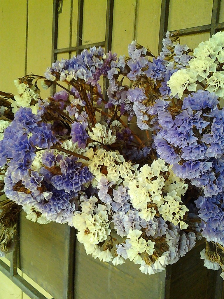 Statice, strawflower and globe thistle continue to bloom later than most other summer annuals, and hold their flowers longer. Even after bloom, the flowers are so stiff and ‘crispy’ that they remain intact and colorful until they succumb to exposure to weather. If cut and brought in from the weather soon enough, they will last as dried flowers at least until fresh flowers start to bloom in the garden next spring.