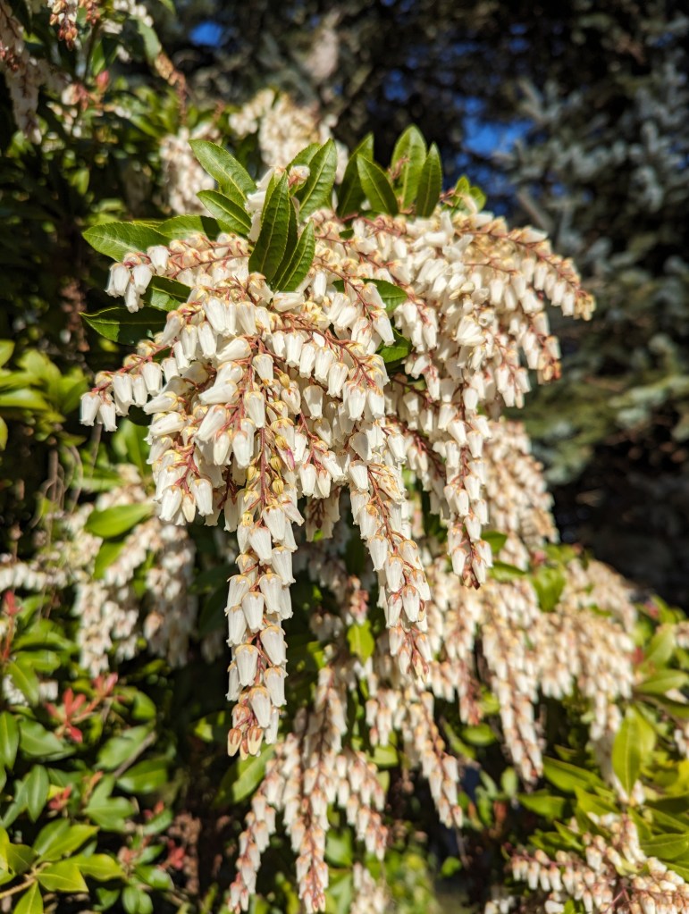 It was sad to see the removal of a rather mature but unstable Italian stone pine from the neighborhood. Fortunately, the arborist who removed it was careful to avoid damaging the garden below. Yet, after all the effort, the garden did not remain undamaged for long. The healthy bear’s breech (acanthus) and young Australian tree ferns that had been shaded by the dense canopy of the pine got roasted by the first warm weather.