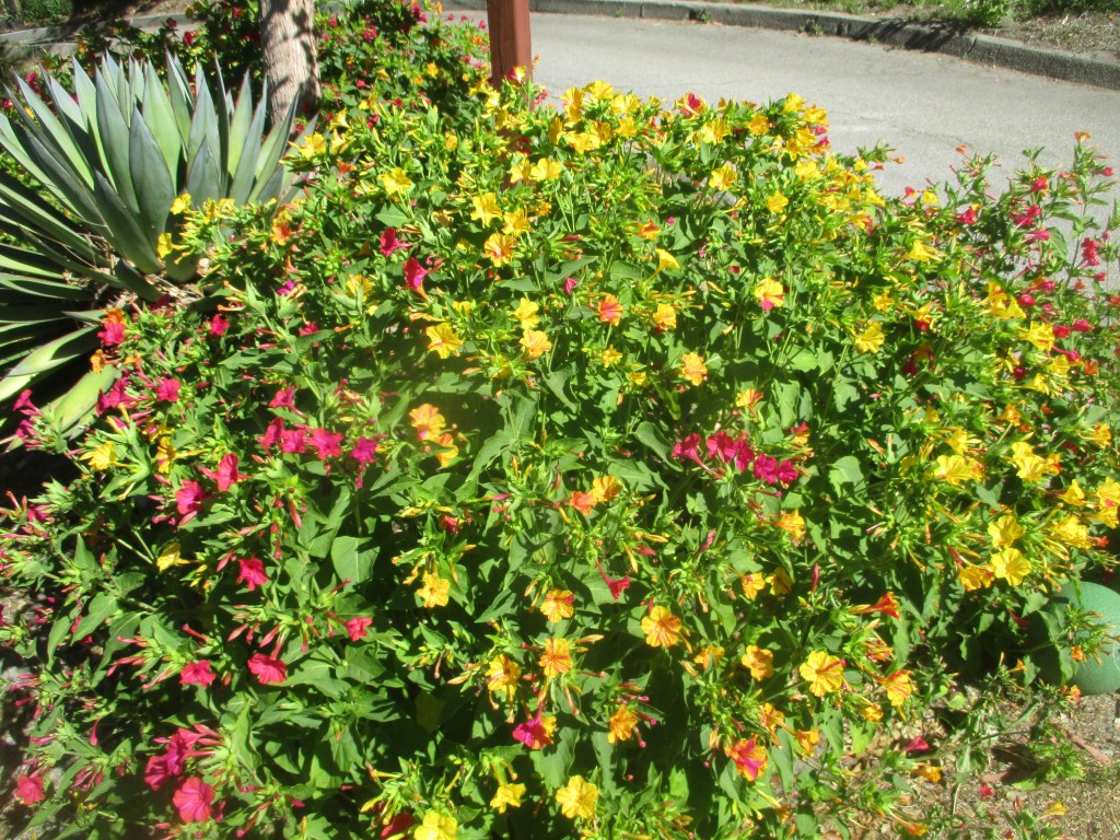 3. Agapanthus orientalis, lily of the Nile are expected to bloom for summer. Here on the edge of a trafficked walkway, they are too tempting to kids with sticks. Fortunately, their evergreen foliage is a nice border even without bloom. We try not to be too discouraged.