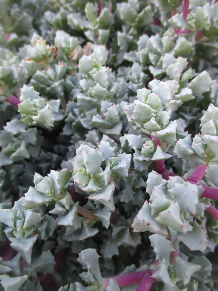 It is no coincidence that many plants with gray foliage are from mountains or deserts. Gray foliage is ‘glaucous’, which, like glaucoma, diffuses light. This helps to protect it from desiccation and scald when sunny weather is also hot, windy or arid. The glaucous foliage of Rocky Mountain juniper, Juniperus scopulorum, is what distinguishes it most from related North American junipers.
