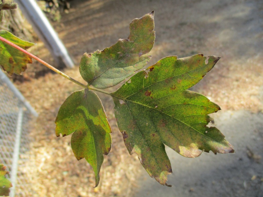 Leaves of three, leave it be, unless one can see that it is a box elder tree, Acer negundo. This is the most common of the North American maples. It is native to all American states except for only Alaska and Hawaii. Yet, it is also unique as the only maple with pinnately compound leaves. Typical leaves have three leaflets, but might have as many as seven. A few rare maples have palmately compound leaves.