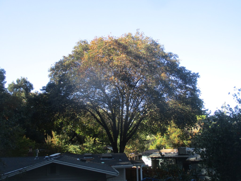 Bigleaf maple is one of merely two native maples here. It is more common within riparian ecosystems and at higher elevations. However, it is rare among home gardens because it is so vigorous and grand. Its aggressive roots eventually buttress, and are likely to ruin lawns and pavement. Autumn defoliation of big trees releases big volumes of big leaves.