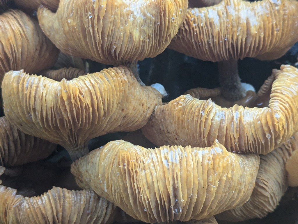 Are these chanterelles? I found them at the base of a dead and rotting coast live oak on the Upper East Side. I took their picture because friends had been asking me if there are any chanterelles to collect there. Apparently, chanterelles can be sold for quite a sum to restaurants. I really should have been more observant when I took these pictures, to see how many more of the same, if any, were in the area. I will not return to the area anytime soon, unless I need to show someone else where it is. It is quite a hike to get there, with a very steep incline. It is likely too late to collect chanterelles anyway. They supposedly emerge after the first autumn rain, but finish through November, which is likely why these look so deteriorated and dried. However, locally, they can continue to appear throughout winter if weather conditions are favorable. I am certainly no expert. After all, even if these are chanterelles, this is my first experience with them. We are barely acquainted. I do not trust them enough to taste them. Nonetheless, I would be pleased if friends could collect real chanterelles for a profit.