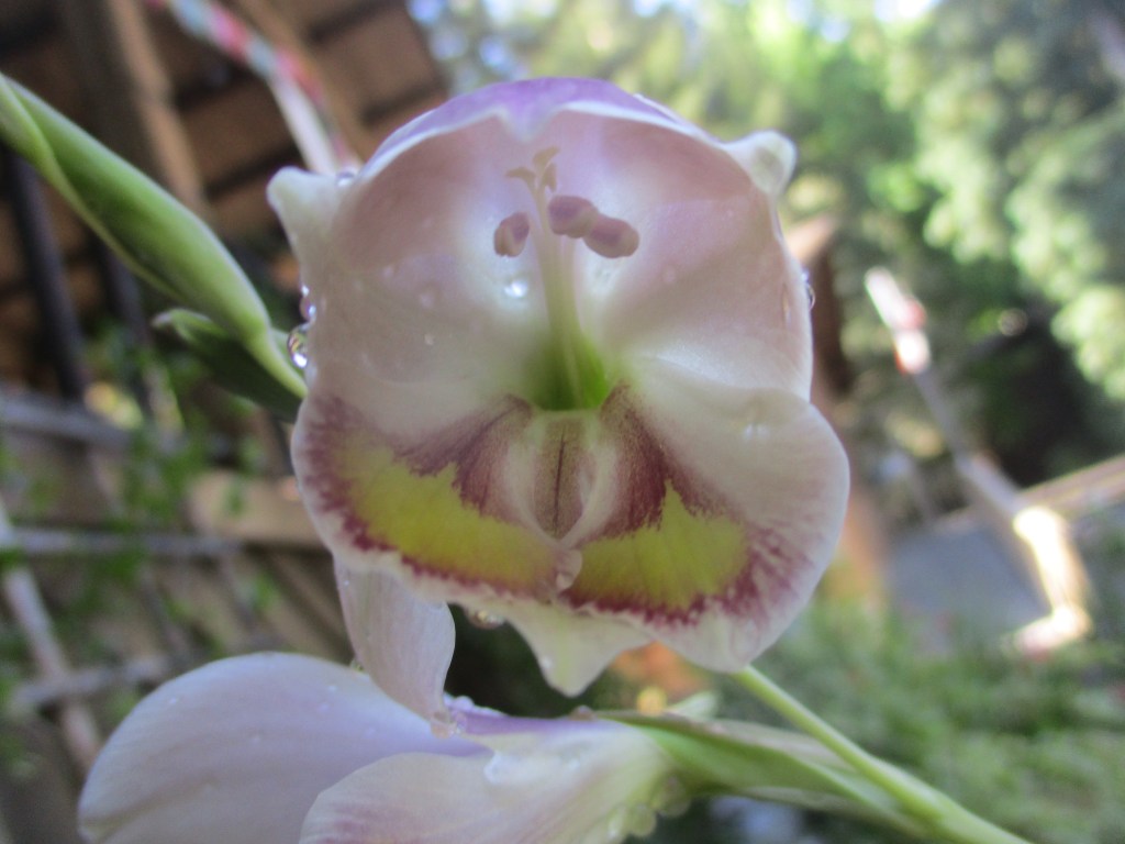 What a delightful surprise! It happens sometimes here in the rose garden. It may not look like much, as a short stemmed single lily floret that is mostly overwhelmed by the English lavender that I held back with my boot for this picture. It should be three feet tall or so, with several florets. The surprise is that no one planted it. Well, at least no one planted it recently. This rose garden has more history than is obvious from what blooms here now.