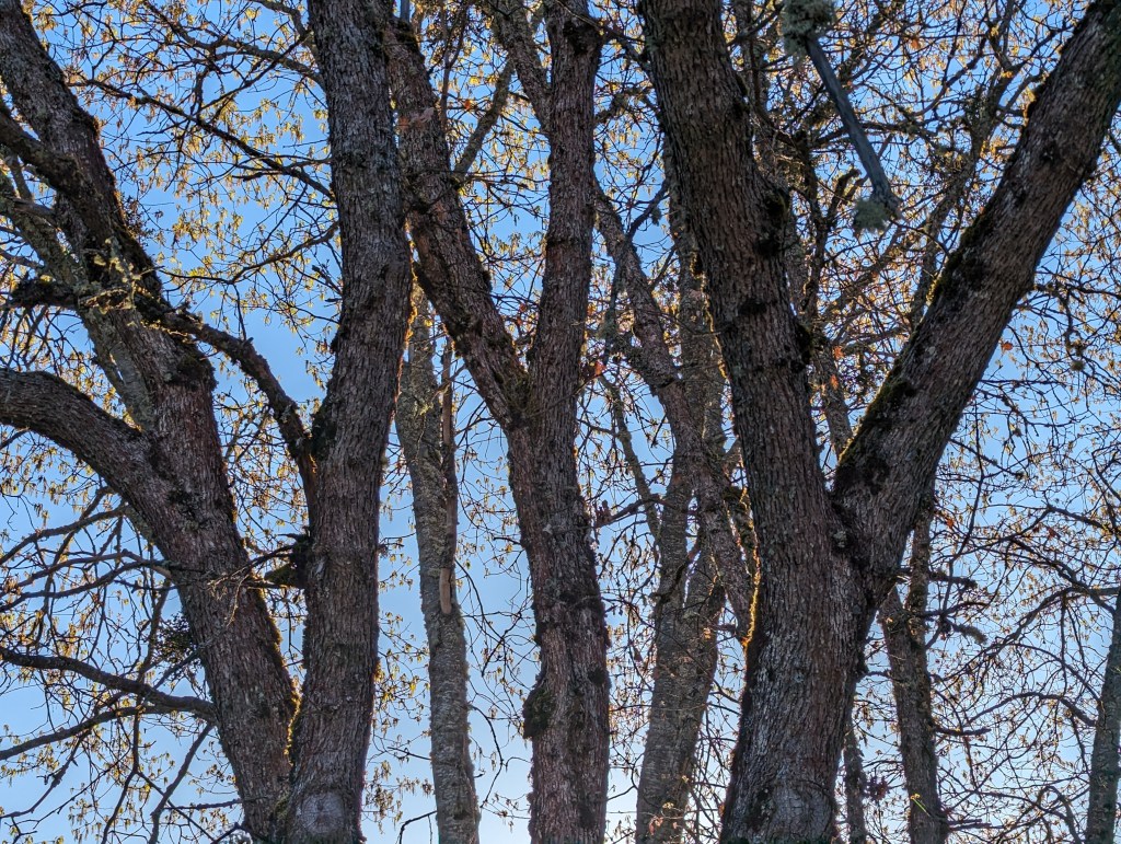 Mature specimens may not seem to get as tall as oaks in the Appalachian Mountains, but are actually the largest oaks in North America, and live more than five centuries. The tallest trees are mostly less than seventy feet tall, but can get taller. Trunks of the oldest trees are commonly six feet wide or wider. The distinctively and uniformly furrowed bark is as classically ‘oakish’ as the rounded prominent lobes of the deciduous leaves, and the sculpturally irregular branch structure. Odd stem galls, commonly known as ‘oak apples’, are home to the larvae of tiny wasps that rely on valley oaks for everything they need. Incidentally, Paso Robles, or ‘El Paso de los Robles’ is named for the valley oaks in the area, which Spanish immigrants thought resembled the ‘robles’, the European oaks that inhabit Spain.