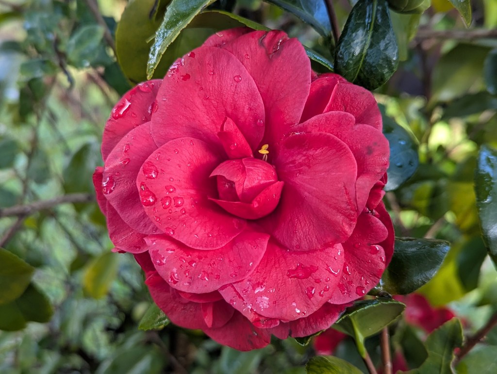 6. Rhododendron spp., azalea started blooming prematurely nearly two months ago and continues to bloom through winter. Its bloom duration compensates for its off schedule.