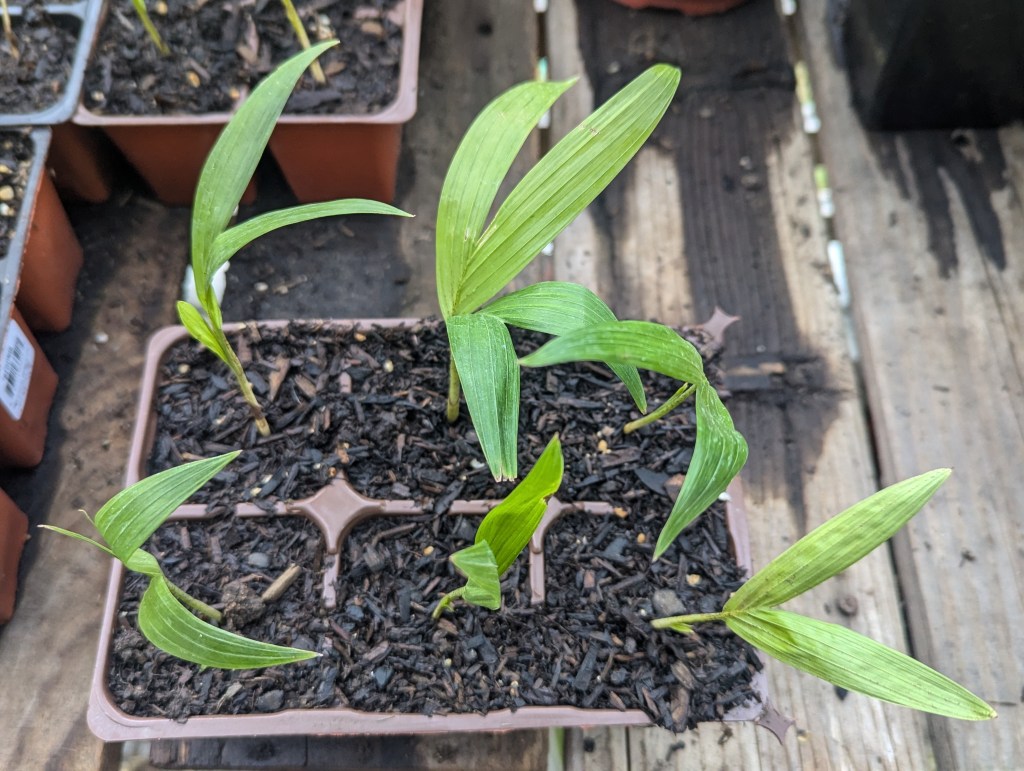 4. Archontophoenix cunninghamiana, king palm, or bangalow palm or piccabeen palm, is one of the popular palms of coastal Southern California that I would like to grow here. Naturally, but just as naturally without any plans, I procured about two dozen seedlings.