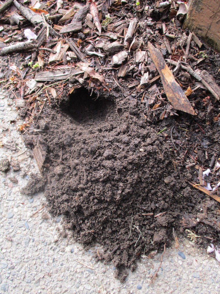 If gopher burrows had windows, this burrow would have hillside views. If gophers had better eyesight, the one who lives here could enjoy the views from such windows. Of course, views are not a concern for any gopher. They just want to burrow through the soil to eat the many roots they encounter. They do not often emerge from their homes for more than the ejection of soil.