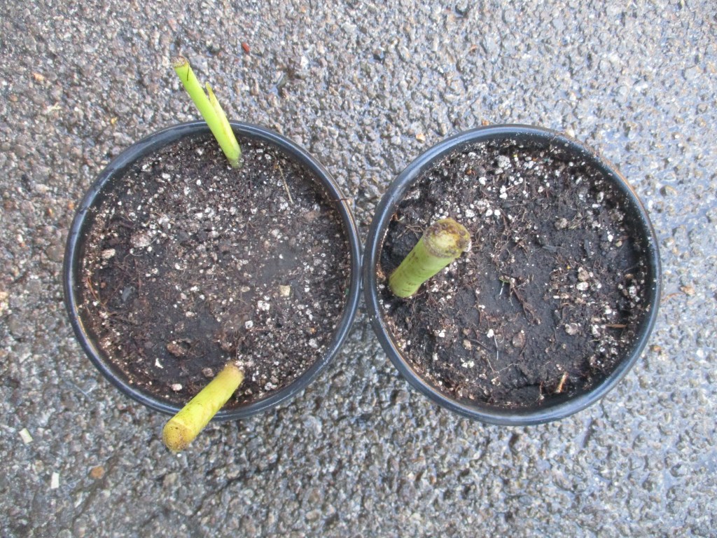 2. Solandra maxima, cup of gold vine cuttings are developing roots now that it will soon be too cool for them to grow. The pruning scrap just happened to become available now.
