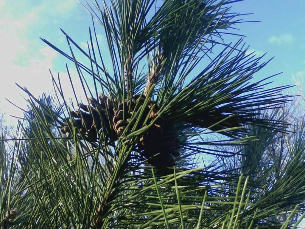 Not many large specimens of Japanese black pine, Pinus thunbergiana, can be seen around the Santa Clara Valley. They can get taller than a hundred feet on straight trunks in their natural range on the coast of Japan, but locally, rarely get more than a quarter as tall on leaning and irregular trunks. They just are not quite as happy in the dry air here (minimal humidity). They are purported to be more tolerant of smog than most other pines that were so sensitive to the nasty smog of the 1970’s, but are more likely to become infested with insect pathogens as they get old.