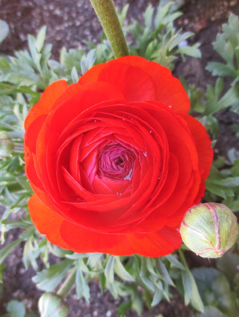 It is hard to imagine how the small shriveled clumps of tuberous roots of ranunculus, Ranunculus asiaticus, planted last autumn can produce such bright pink, red, orange, yellow and white flowers between late winter and early spring. The two or three inch wide, semidouble or double flowers stand about a foot high, just above their soft deeply lobed foliage. Those of us who did not get ranunculus in the ground last autumn can find blooming plants now. Ranunculus want to be in full sun, in rich, well draining soil.