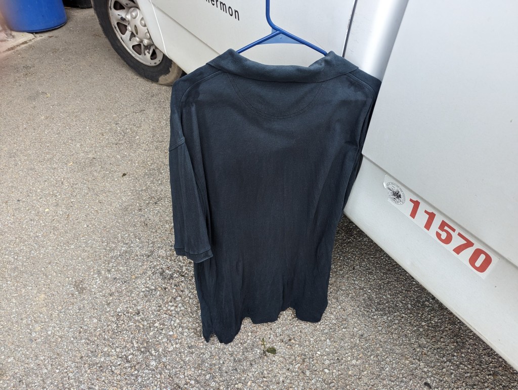 1. Frost is generally minor and uncommon here. However, a wet jersey that was hung to drain overnight froze solid enough to lean against this pickup. Its hanger is not hanging.