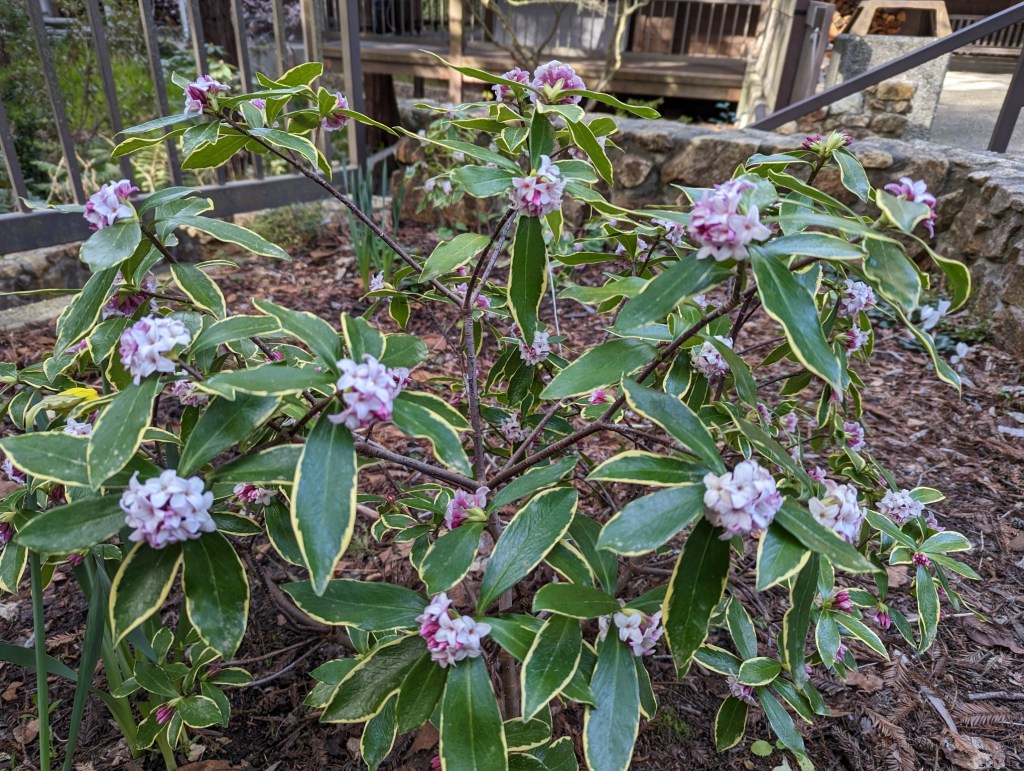3. Daphne odora ‘Marginata’, winter daphne is still blooming! It blooms slowly through winter, but should be finished by now. Furthermore, it blooms remarkably well for here.
